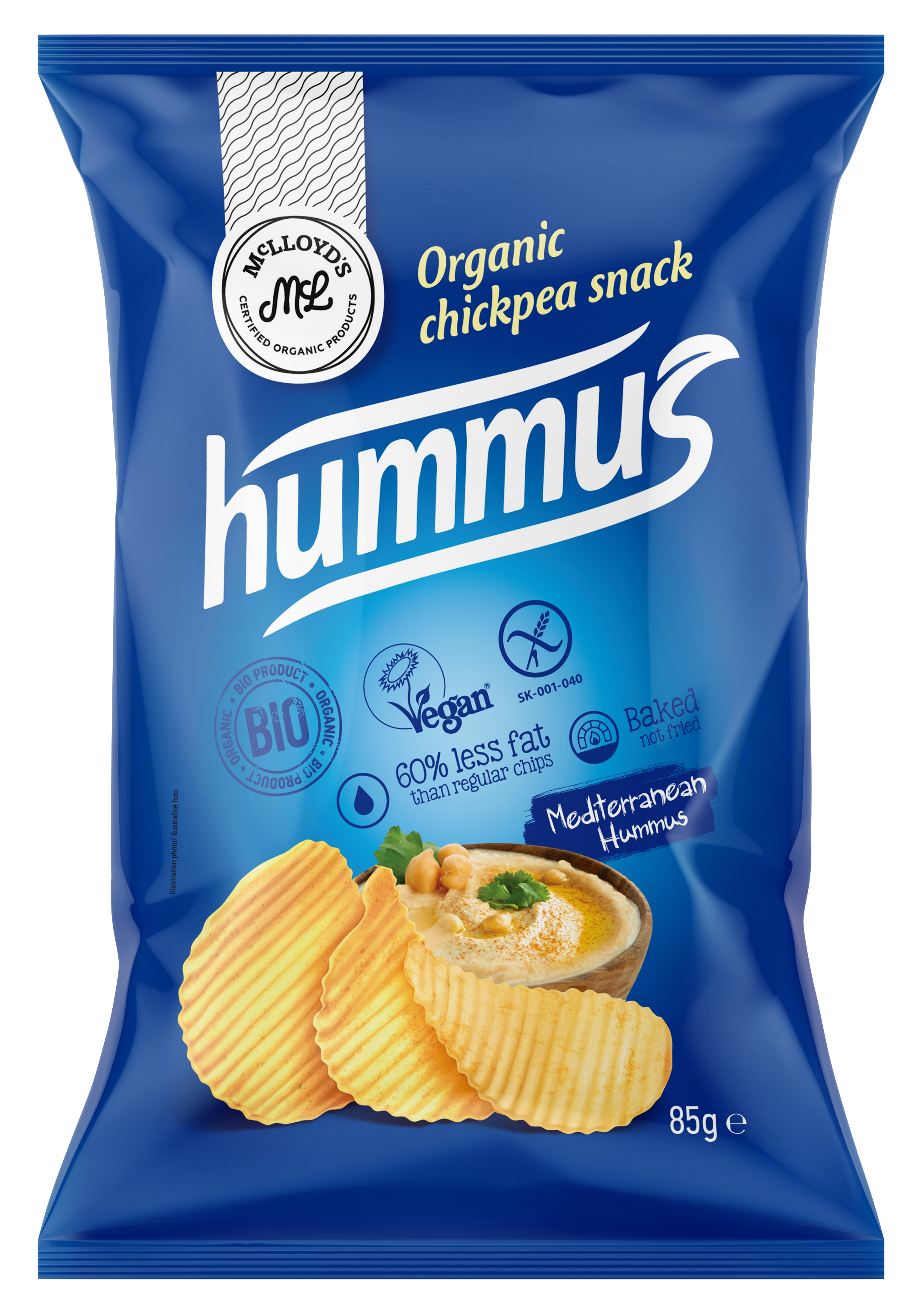 Hummus er bakt (og ikke stekt), og inneholder 60% mindre fett enn klassiske chips.